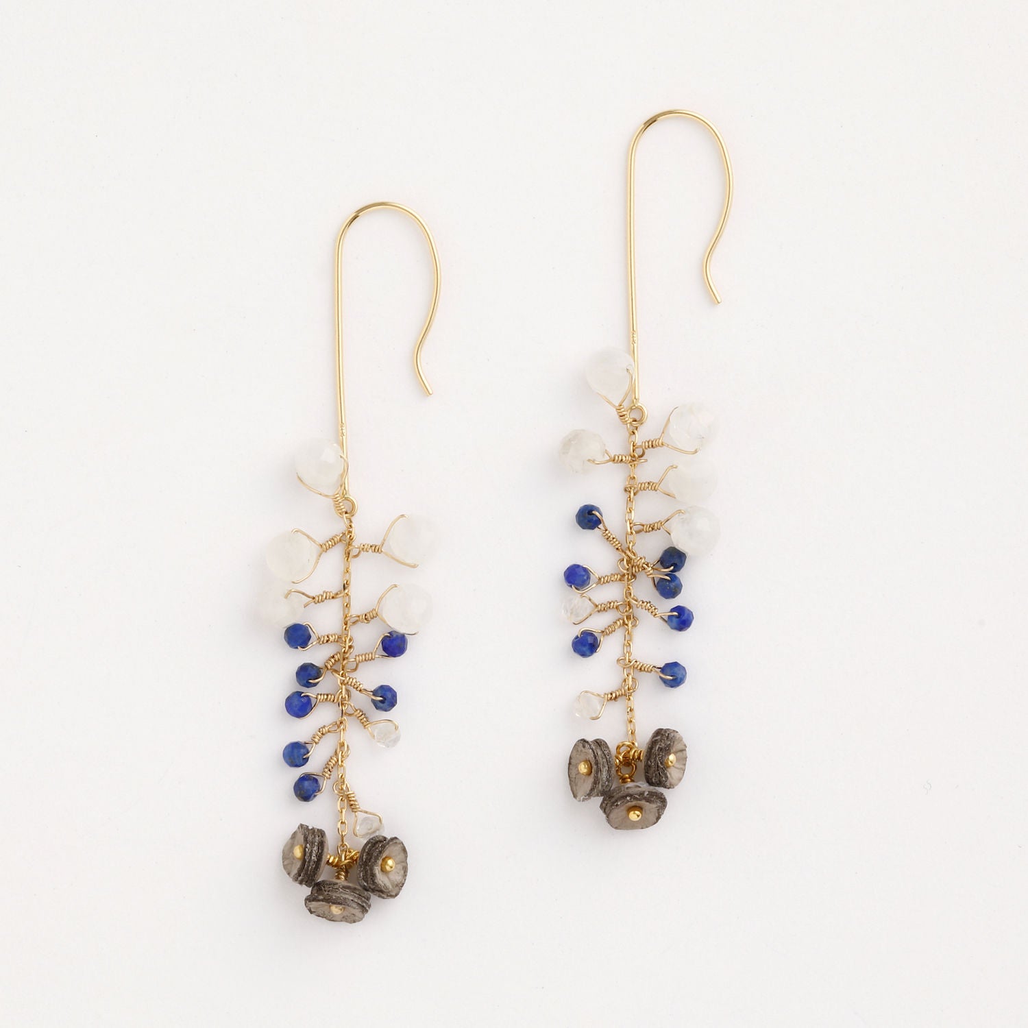 gray/ Leather, K18, K14GF wire, moonstone, lapis lazuli
