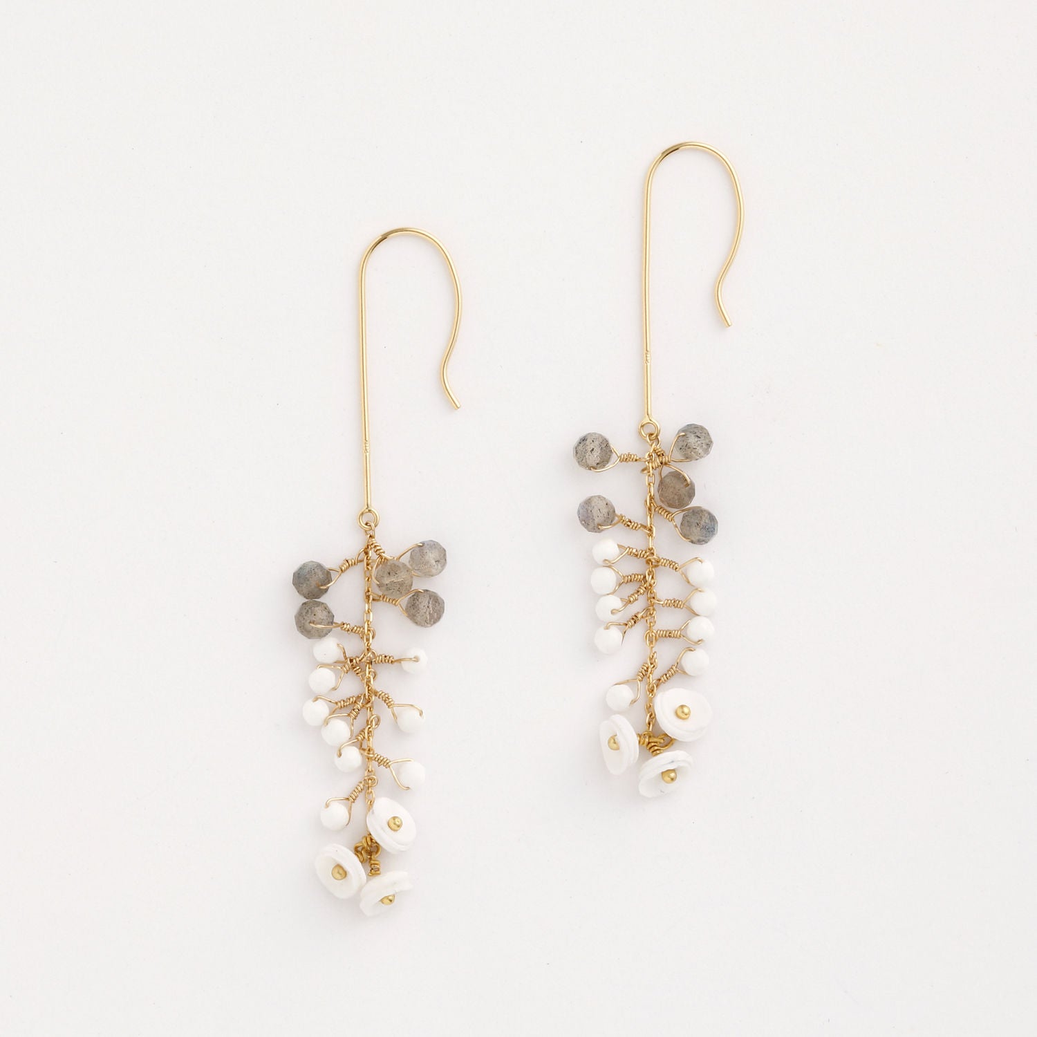 white/Leather, K18, K14GF wire, white onyx, labradorite