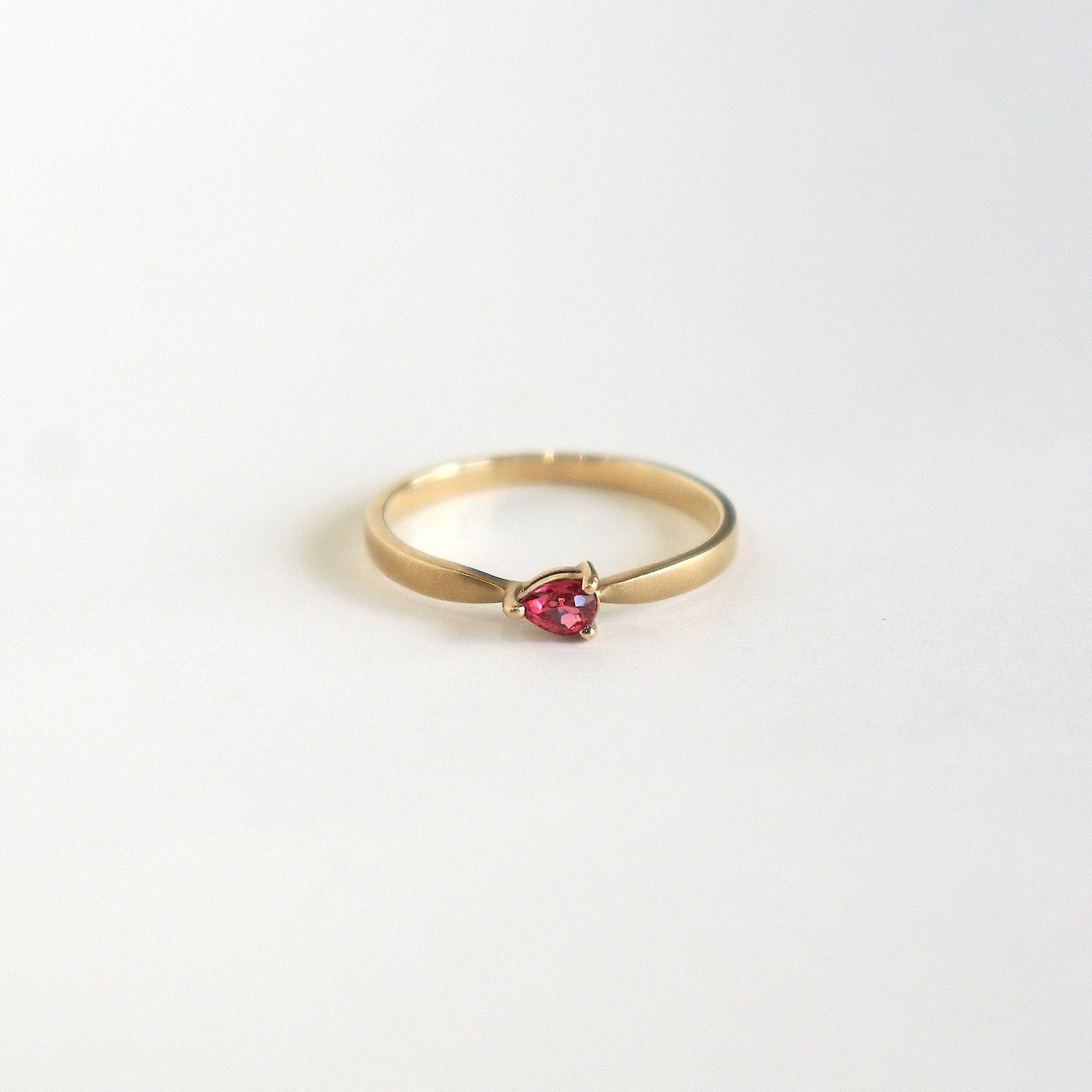 This ring has a simple yet strong shape, with a sharp bamboo leaf and a pear-shaped natural stone that looks like a drop. The matte texture and minimal shape make it easy to match with other items.
