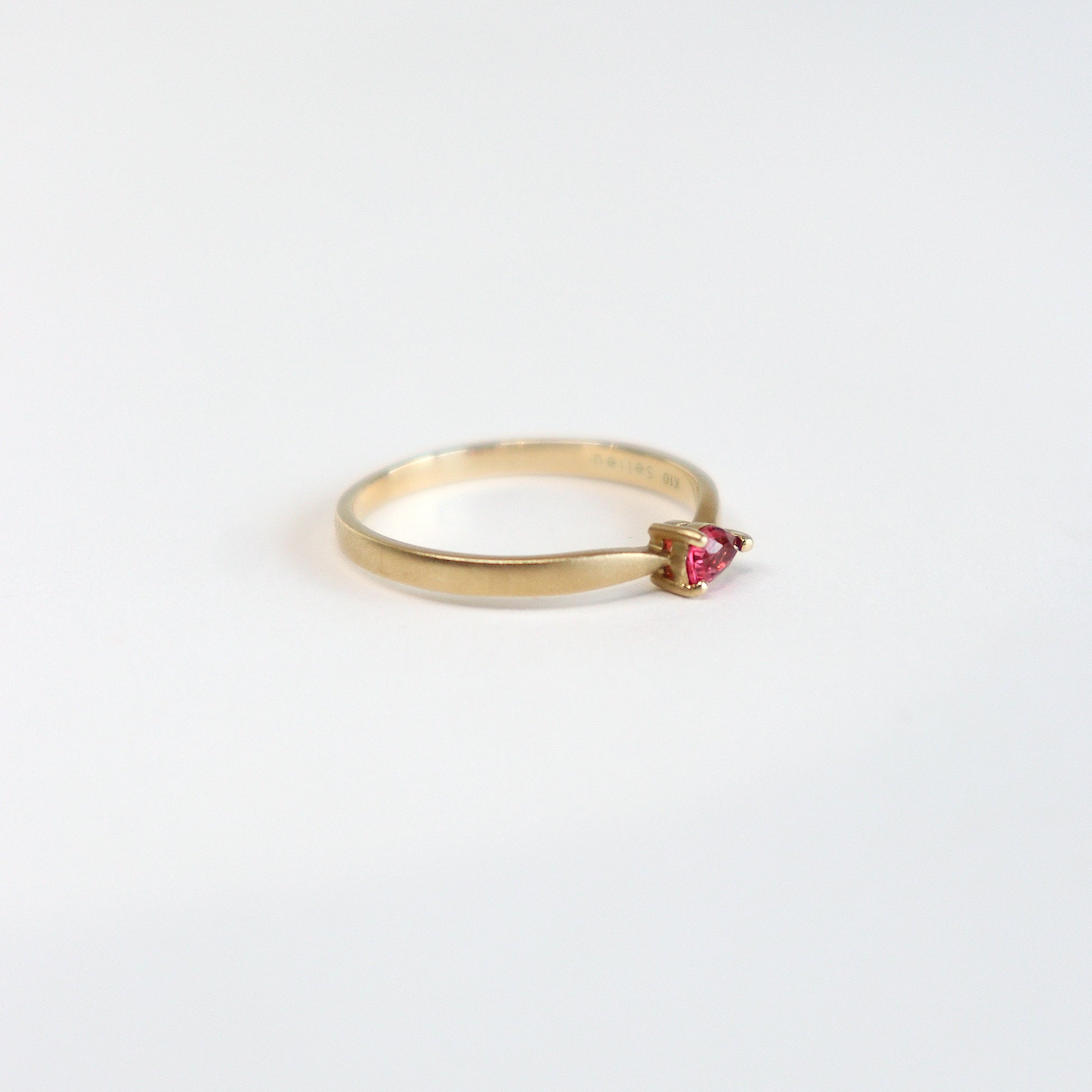 Red spinel is a passionate and breathtaking natural stone with high transparency and vivid red color. Despite its small size, it has a solid presence and exudes positive power. This is a one-of-a-kind ring.