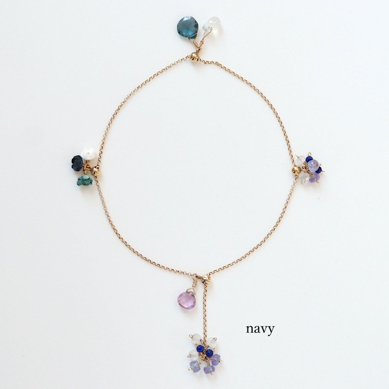 Navy: K10YG, K14GF, leather , London blue topaz , moonstone , amethyst , buttons: moonstone , tanzanite , lapis lazuli Color: 2 types