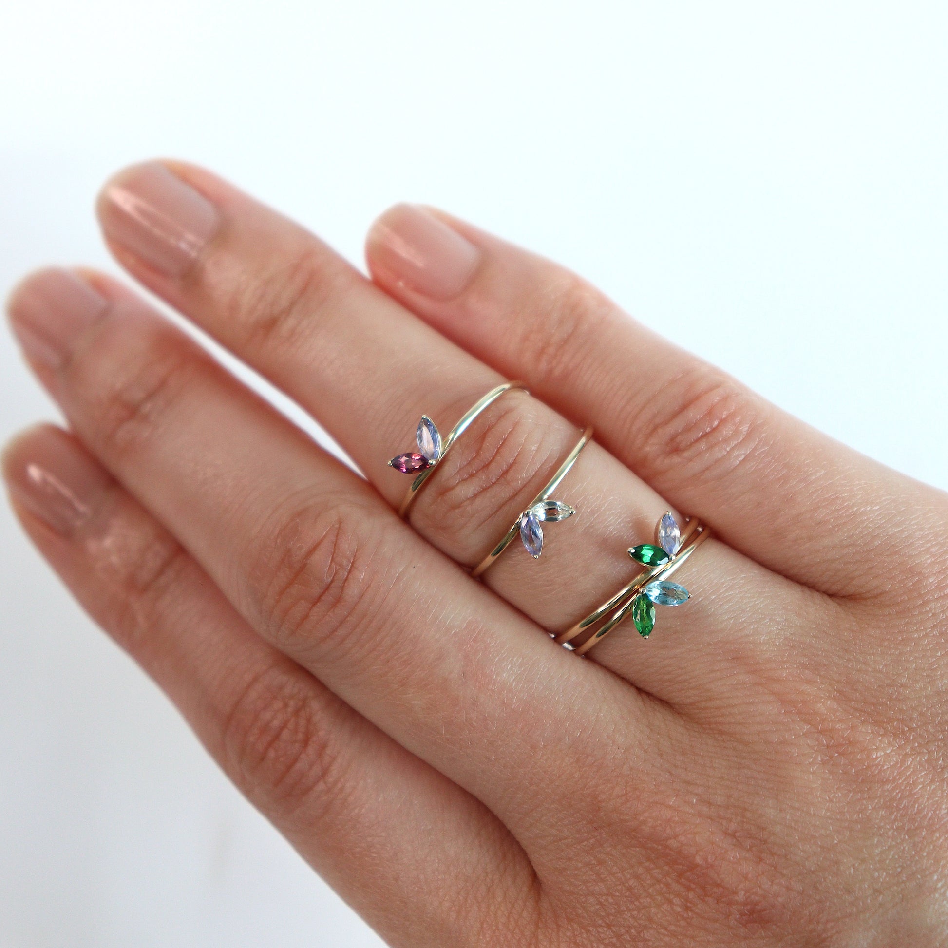 風になびいた葉っぱが、指にふわりと舞い降りた、そんな可憐で繊細なイメージを表現したHA Ring。