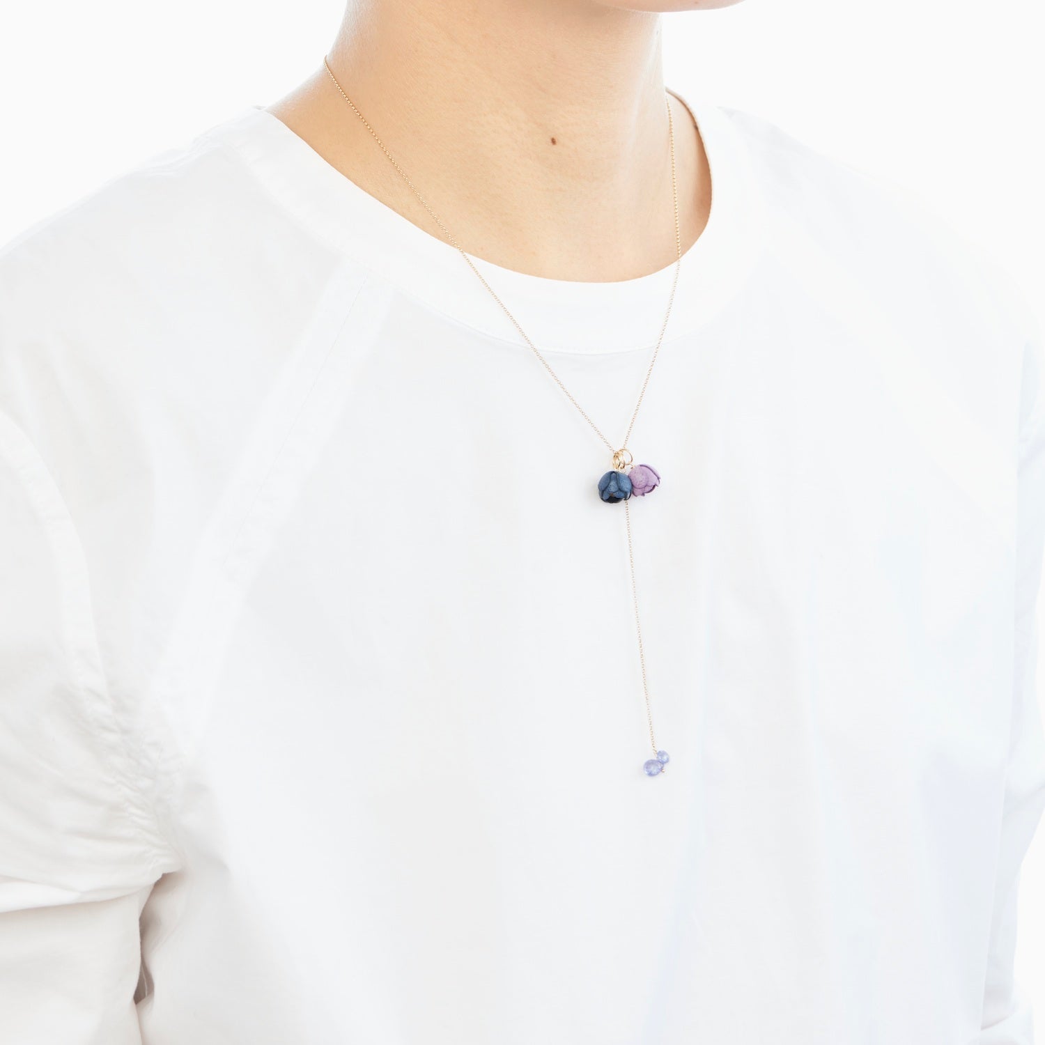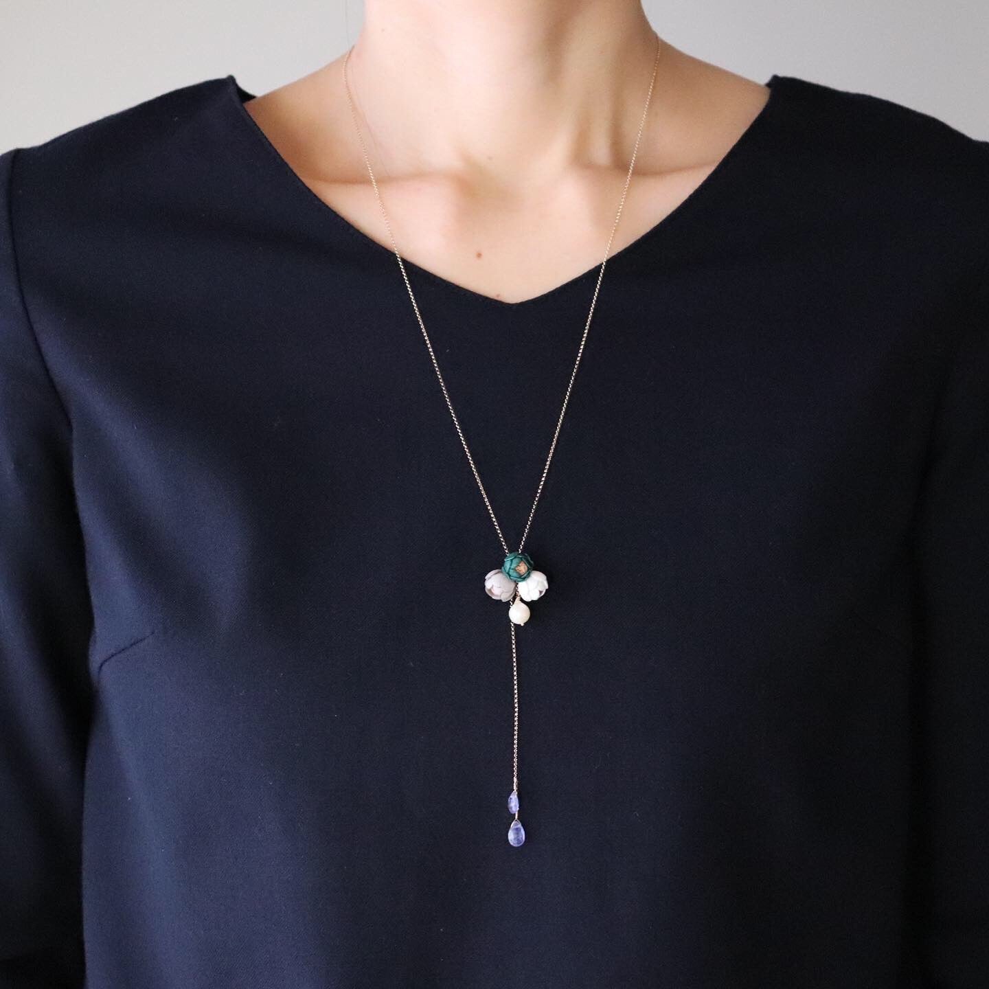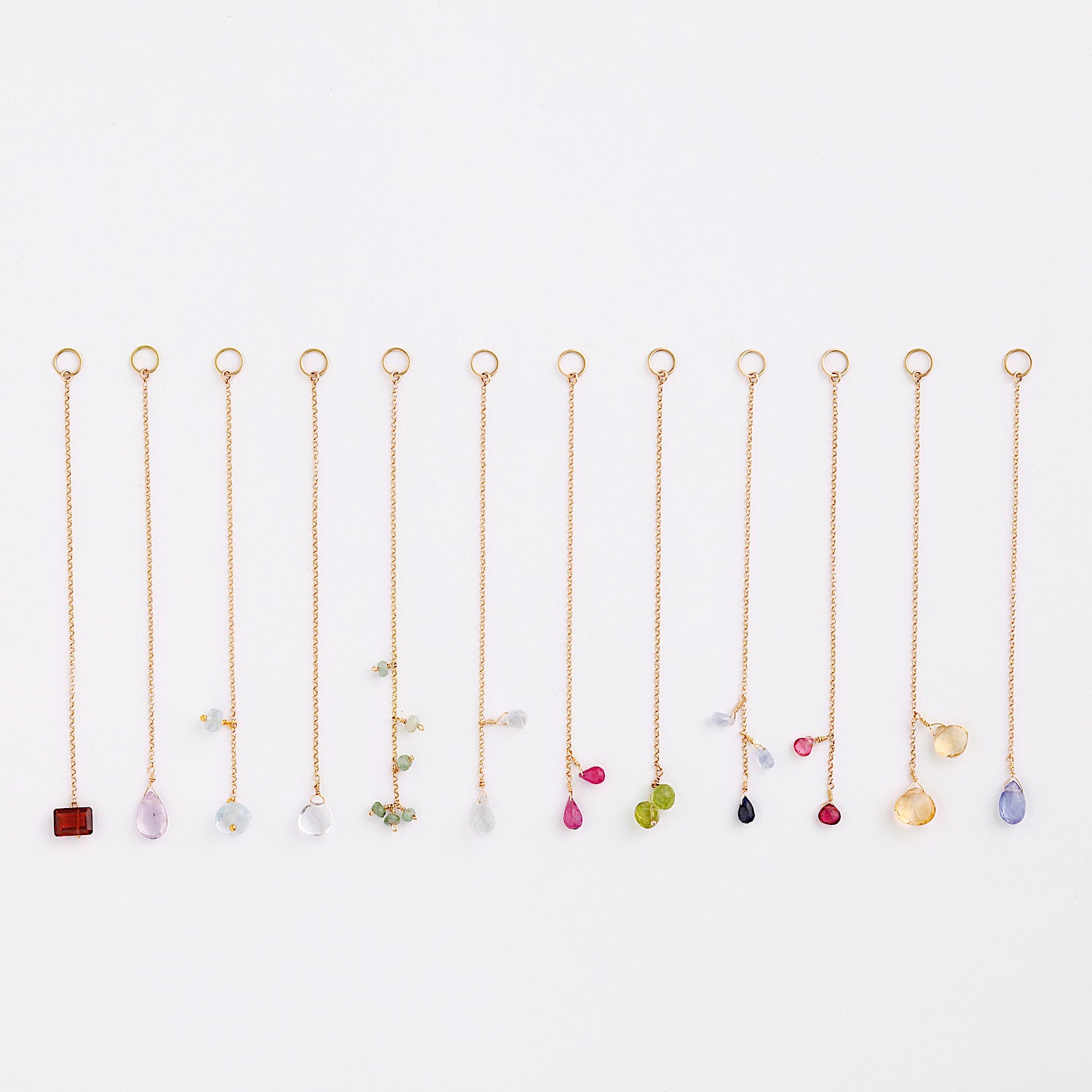 12種類の誕生石のチャーム 。大人っぽいアレンジが楽しめるよう、ロングに仕上げました。誕生石なのでプレゼントにもピッタリです。