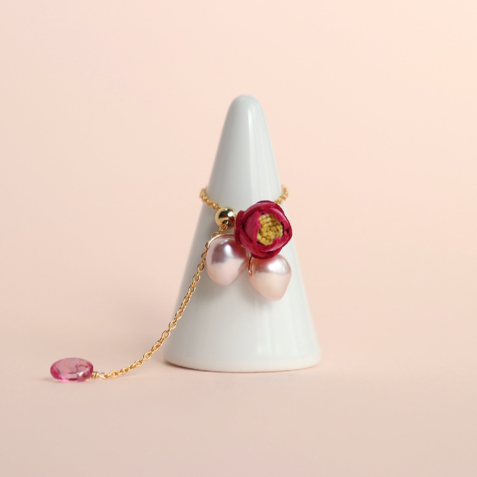 椿をモチーフにしたTsubakiシリーズのフリーサイズチェーンリング。
